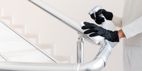 Curățarea balustradelor, ușilor și ferestrelor de pe casa scării